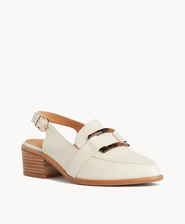 A tortoiseshell buckle adds flair to our Andy slingback. A pointed toe keeps this style classic, while the low heel height makes it versatile and comfortable.