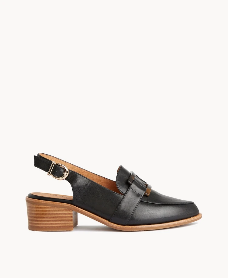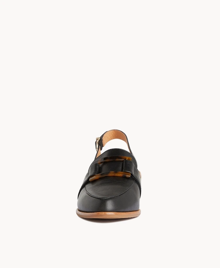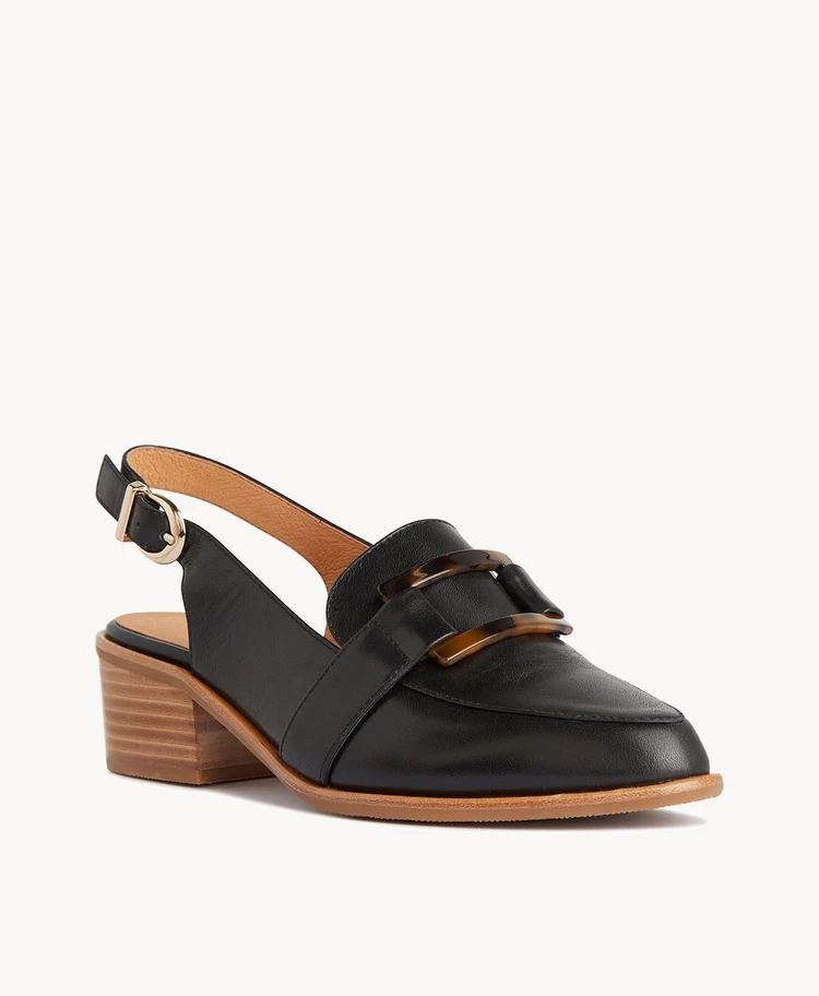 A tortoiseshell buckle adds flair to our Andy slingback. A pointed toe keeps this style classic, while the low heel height makes it versatile and comfortable.