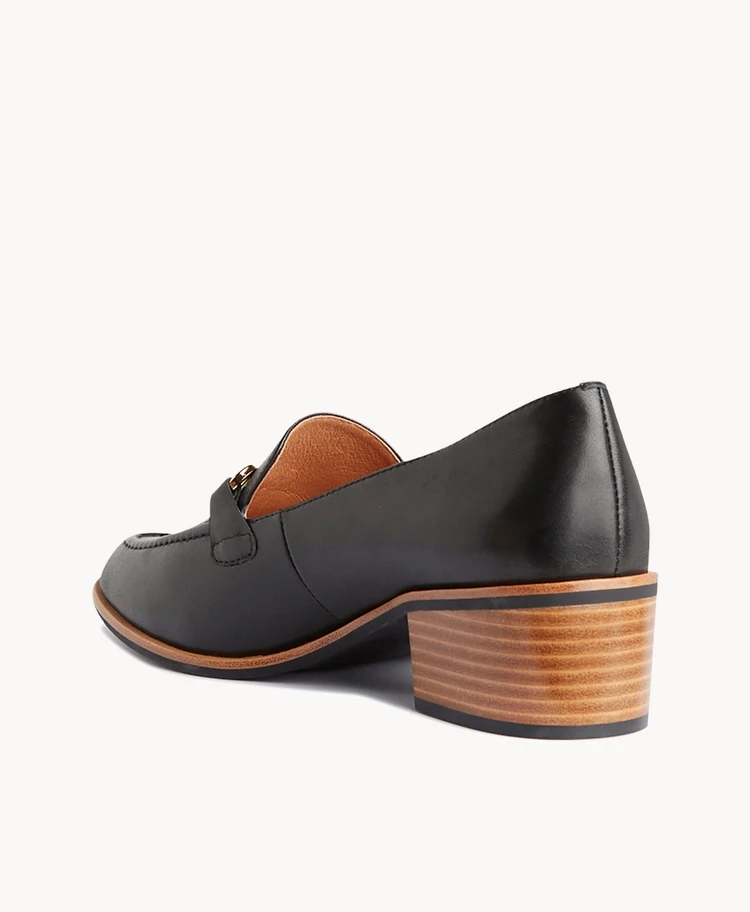 Our Audrey loafer has a very vintage feel to it, with a contrast 5cm block heel and heritage horse-bit hardware on the upper. Pair Audrey with an oversized sweater and your favourite denim for a relaxed look.