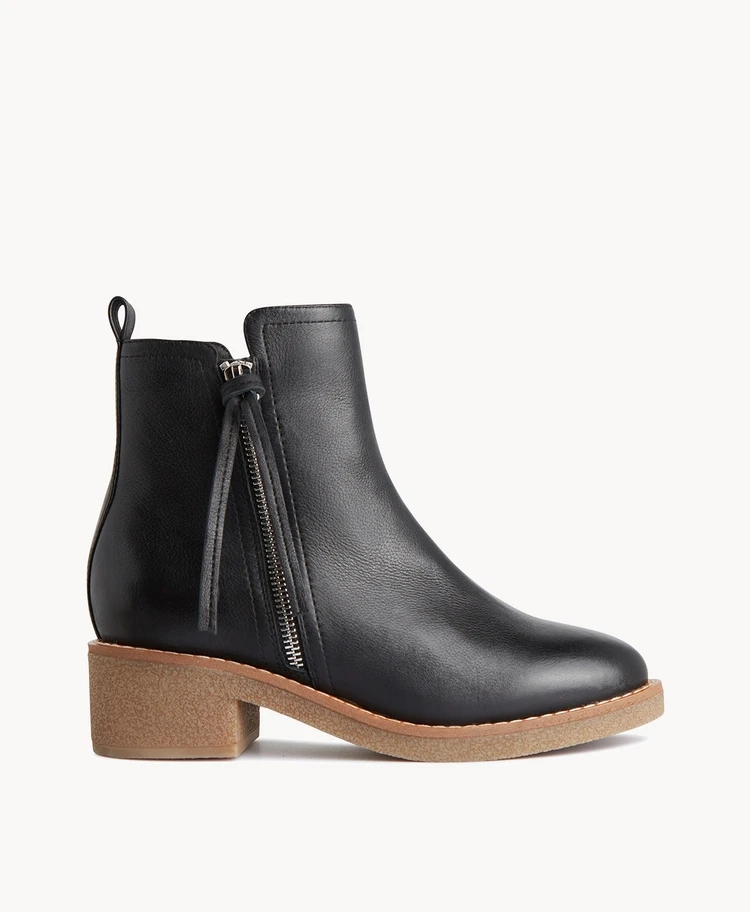 Our Benny ankle boot has the kind of relaxed styling that you’ll want to wear again and again. Benny’s crepe sole has stop-stitch detailing and the exposed zip has a knotted leather pull tab which pulls the whole look together.