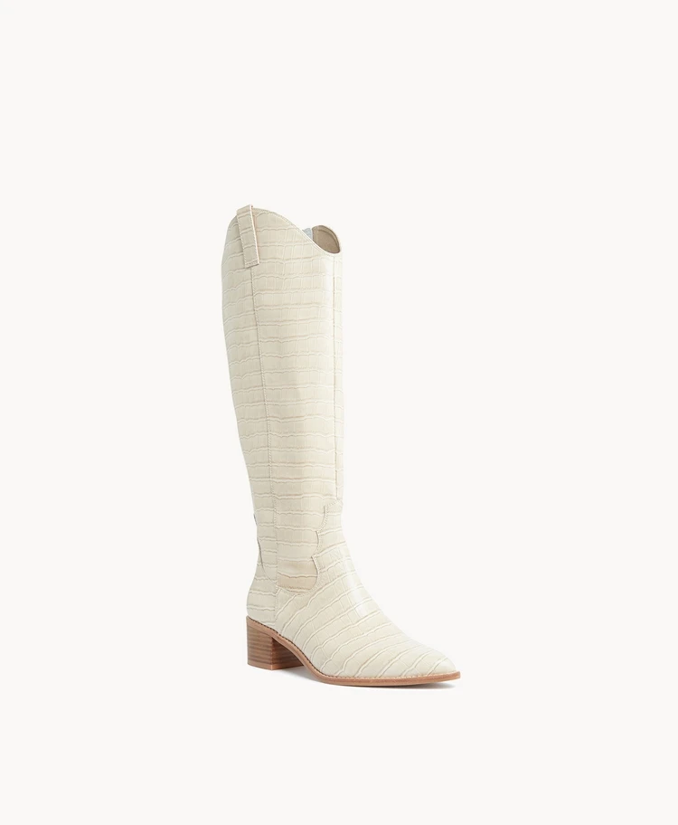 Taking a Western silhouette and refreshing it for a contemporary gaze, meet the Blaine knee high boot. Set on a low block heel for practicality, these boots are a statement worth making.