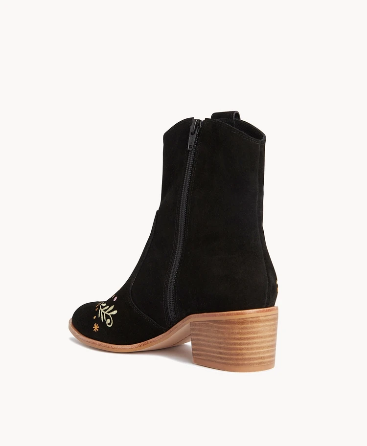 The beautiful floral embellishment on our Bounty ankle boot is lovely update to the Western trend that’s everywhere this season. Bounty has a mid-height block heel and embellished pull-tab for ease in and out.