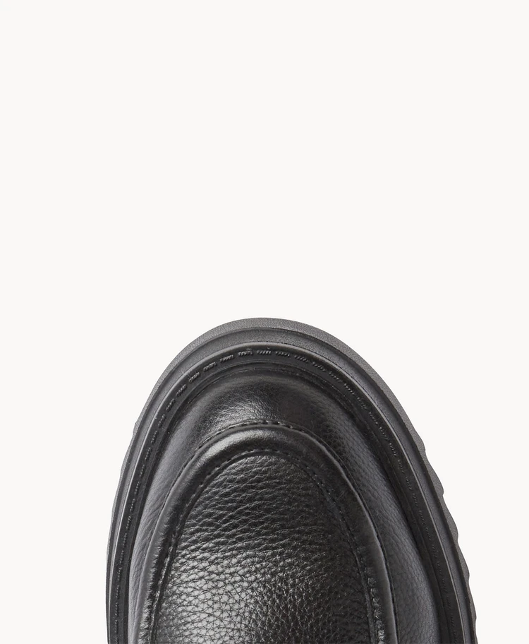 Our Button platform loafer is set on a rubber tread sole that is reminescent of 90’s platform styles. Lean into 90s styling with a long slip and chunky knit.
