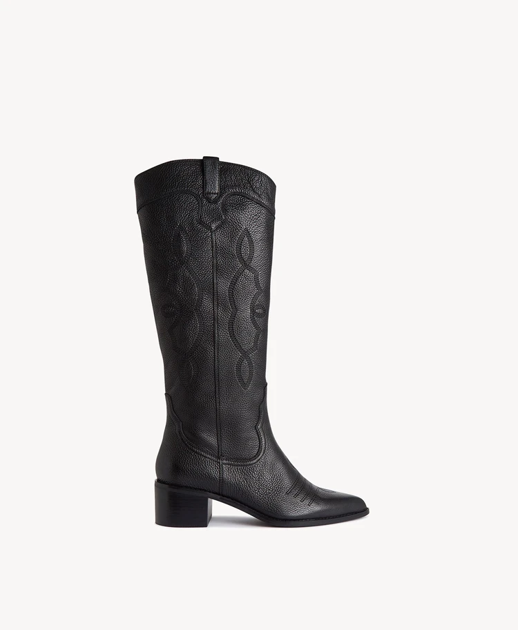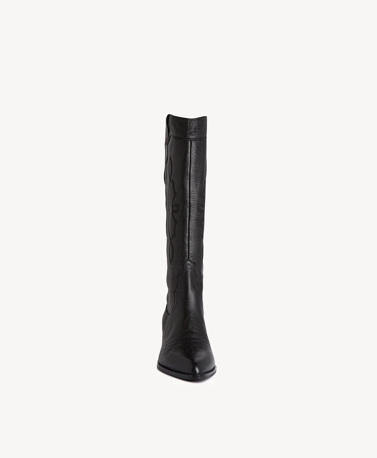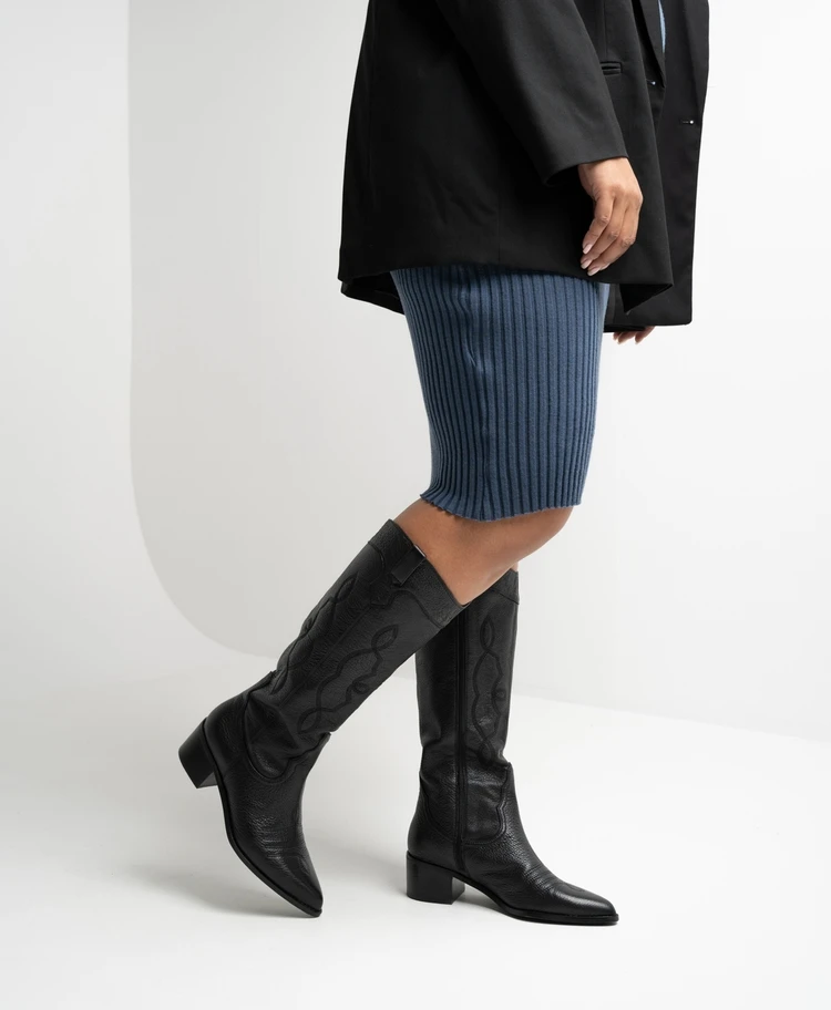 Our Buxton knee high boot embodies the best of the West, with ornamental top stitching and a curved top-line that both elevates and accentuates. Pair this statement style with a bold-hued dress and blazer for a look that’s fresh and fashionable.