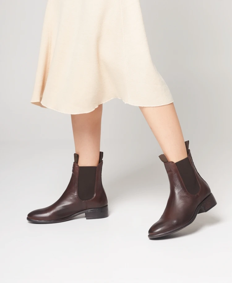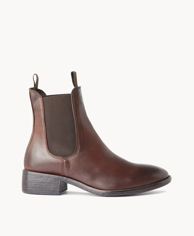 Our Cecile chelsea boot is crafted in a rich burnished leather that will pair beautifully with your favourite autumnal tones in the city or country side. Set on leather stacked block heel, Cecile has a stretch gusset and double pull tabs for ease on and off.