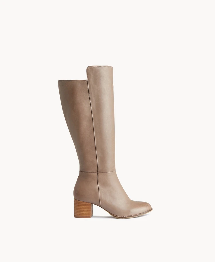 Our Corey knee high boot has a full leather upper with a generous inside gusset that hugs the leg for a comfortable fit. The leather stacked block heel adds support and an ample lift for all day wear, and the rounded toe will complement casual or dressy styles alike.