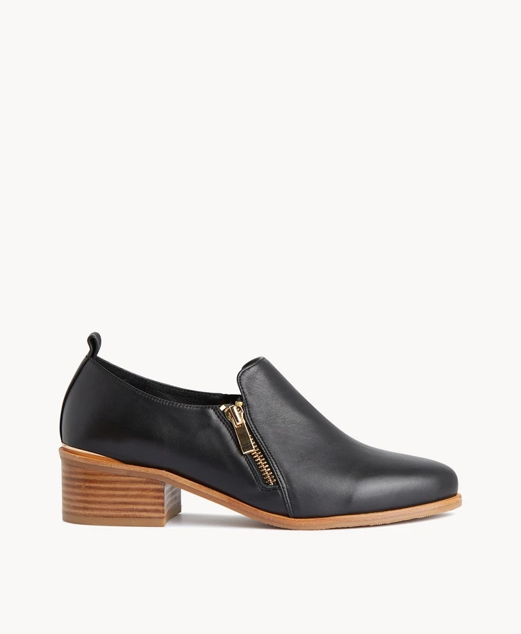 Style our Dash loafer with your favourite workwear or casual weekend looks. The 5cm leather stacked block heel adds a lift and an exposed side zip adds a luxe touch.