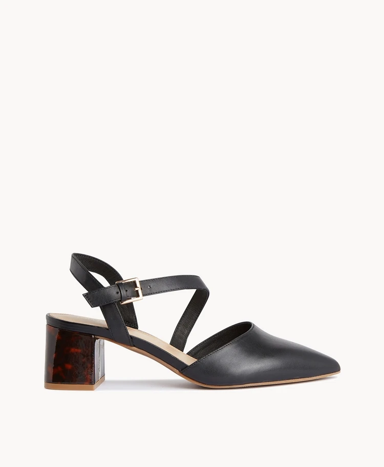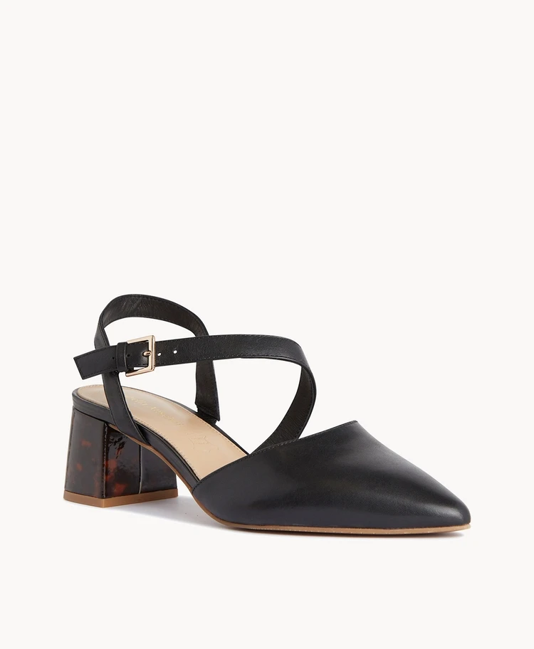 Our Dillon heel screams vintage sophistication, with a tortoise wrapped heel and elegant straps that wrap over the foot. Pair these with anything from low-key denim to your favourite tailored pieces.