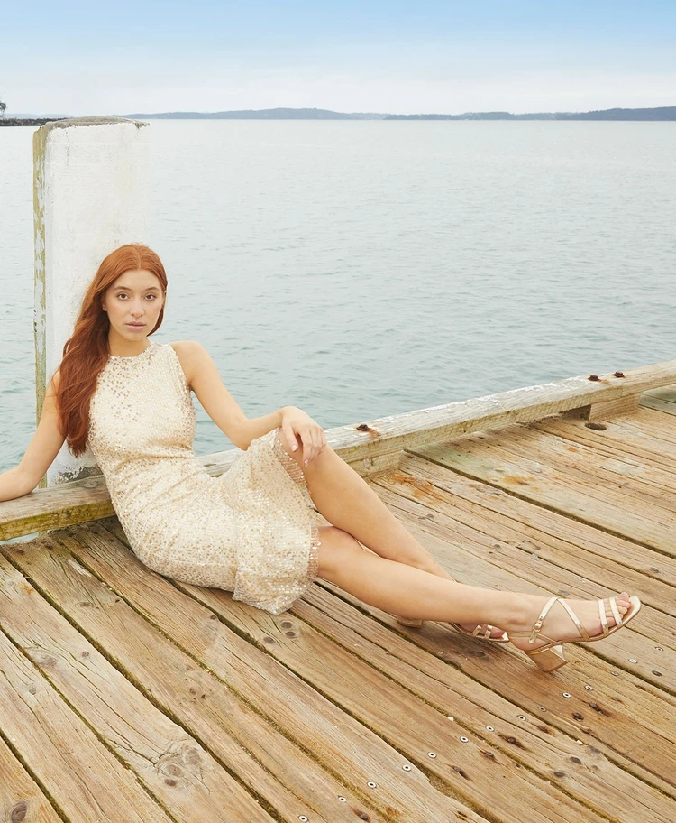 The embodiment of elevated eventwear, meet the Doris sandal. With a low heel and barely there straps, she’s the perfect accompaniment to summer soirees.