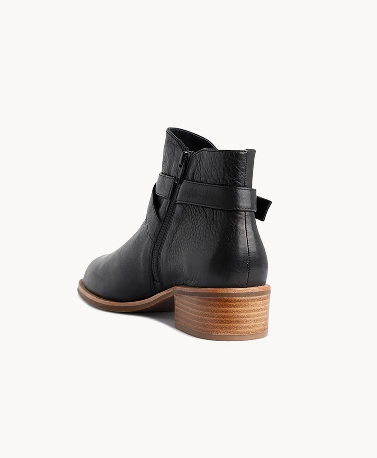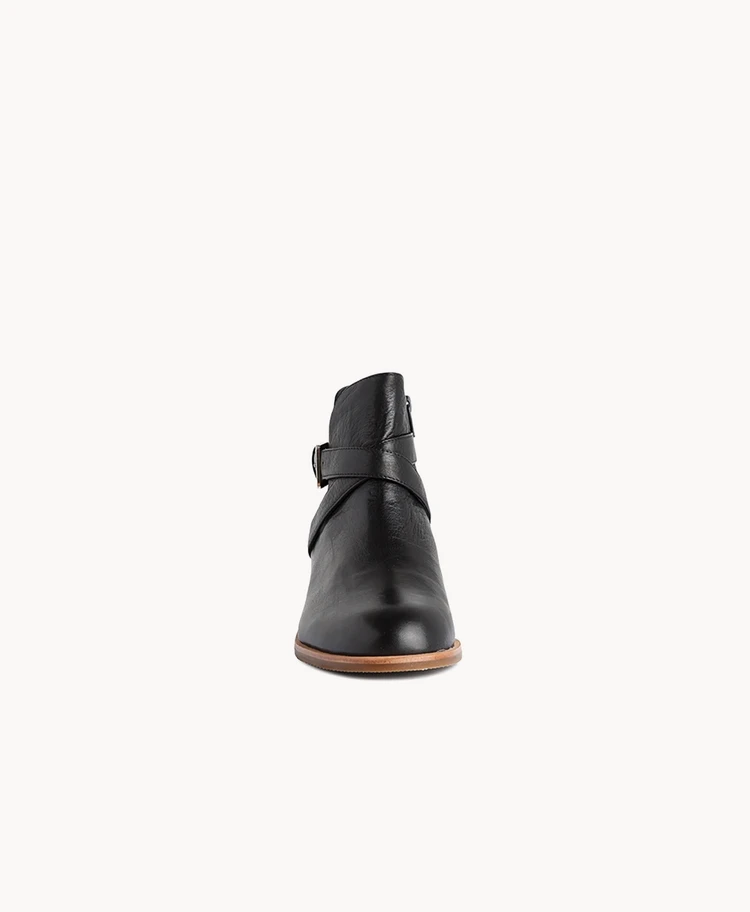 The cross-over leather buckle strap is a stand- out feature on Ebba, with a natural rand and leather