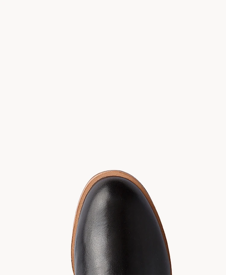 stacked heel. Pair with jeans and a tee for a laid back look.