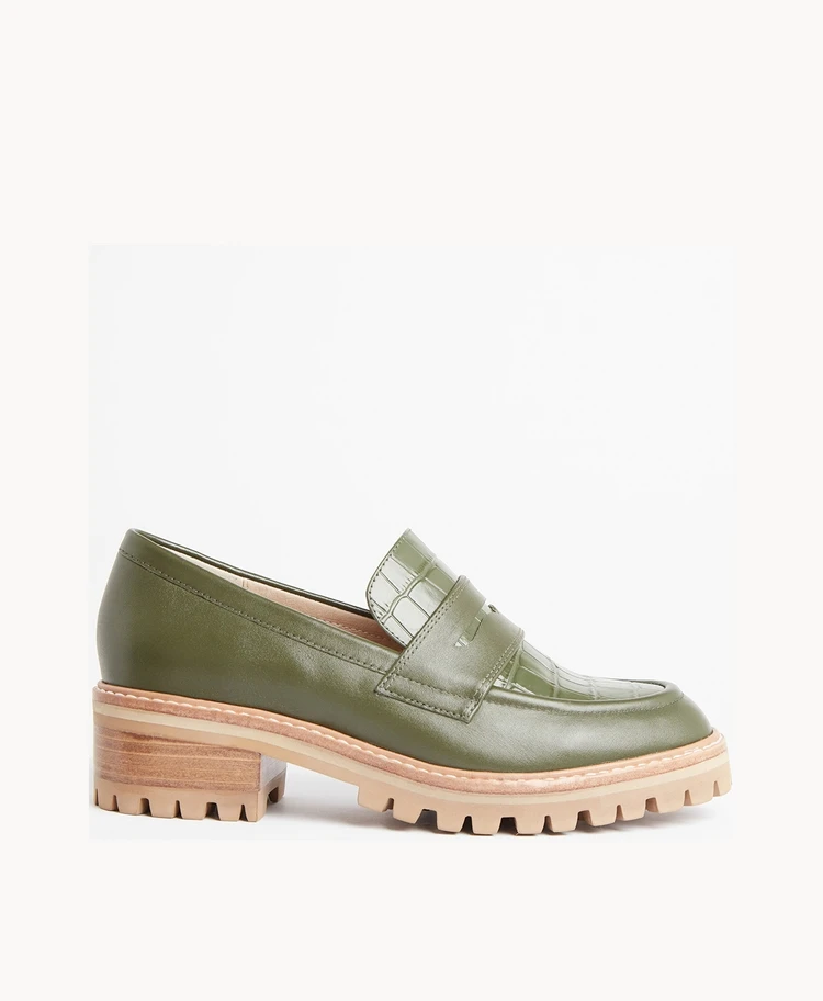 The rubber tread sole on our English loafer adds ultimate comfort and wearability to this classic style. The croc effect leather detail really elevates these, perfect for pairing with long coats on cold days.
