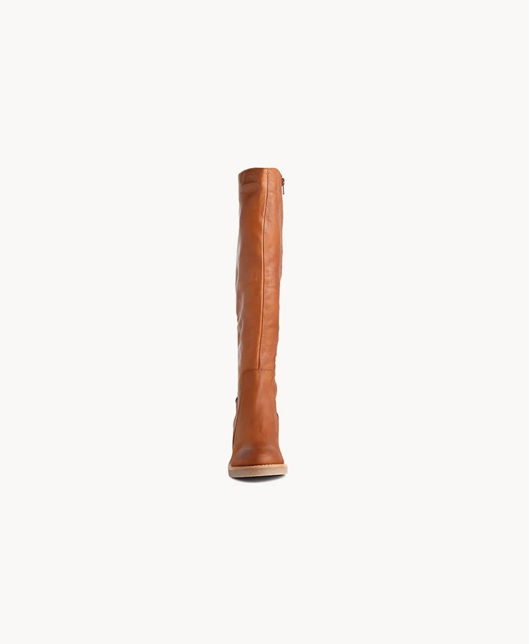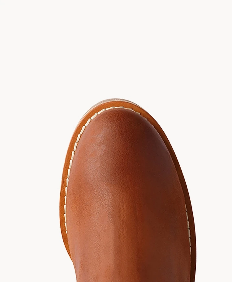 Crafted in Portugal in premium leather, our Belarus knee-high boot is set on a comfortable rubber sole outlined with contrast stitching. A stretch panel in the back hugs below the knee for a perfect fit, with a side zip for ease on and off. Layer with your favourite autumnal pieces.