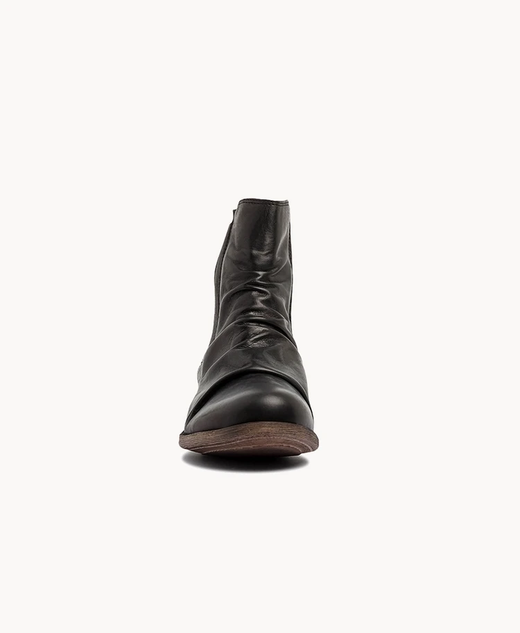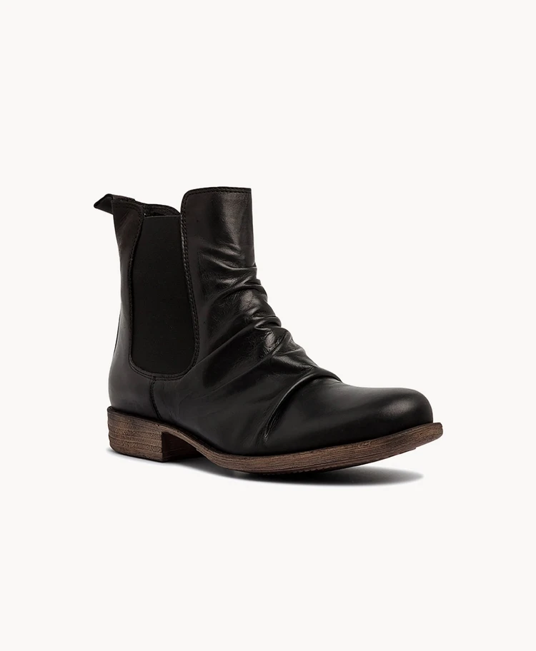 One of our most beloved (and bestselling) ankle boots, these are crafted in Portugal and feature rouched leather, an elastic gusset and a comfortable low heel.
