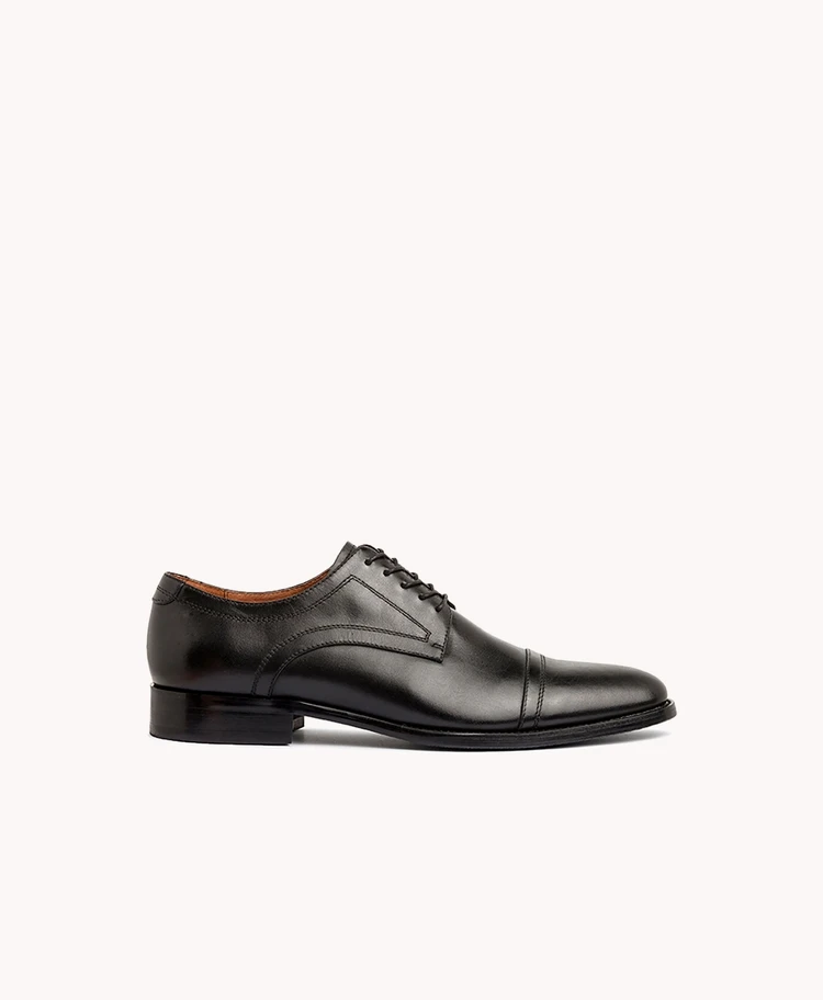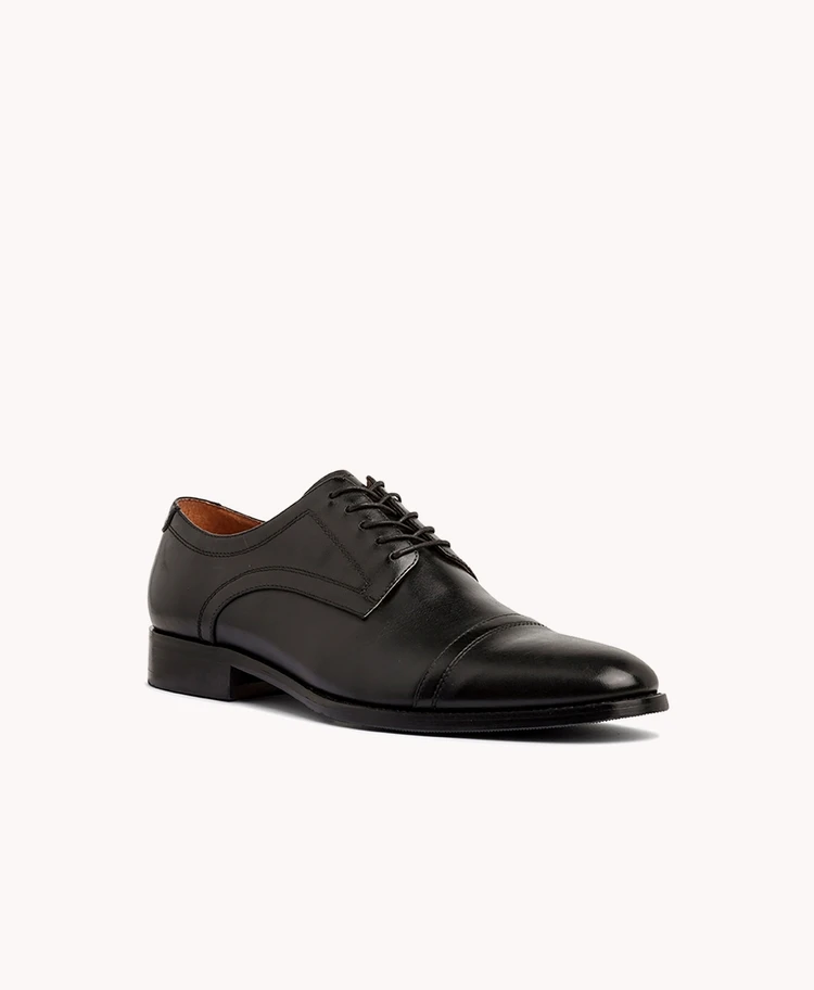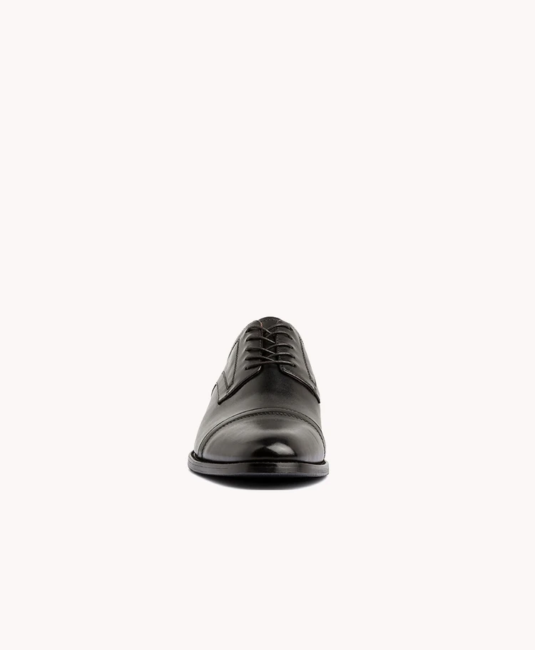 Face the boardroom head on with a slick pair of dress shoes, like Evan.