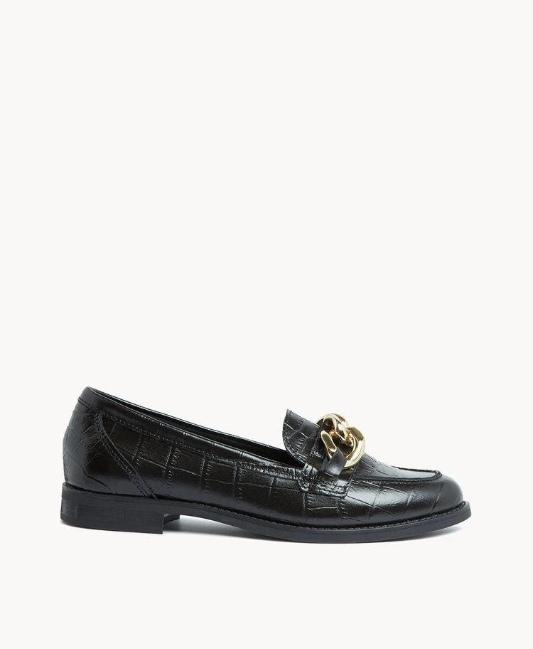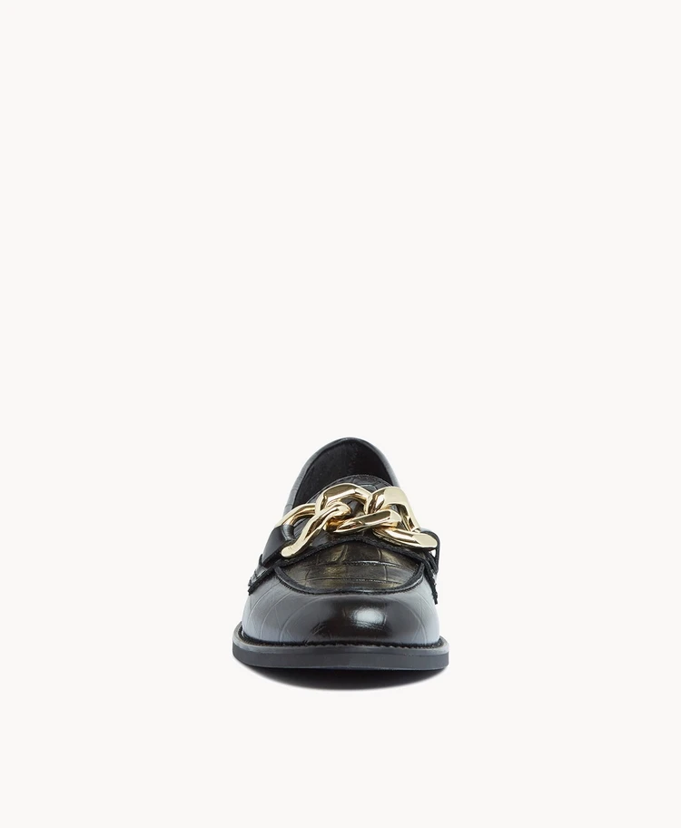 Our Fae Chain loafer features minimal styling and a refined profile making her the perfect wardrobe staple. Chain detailing with a croc upper really elevates this style.