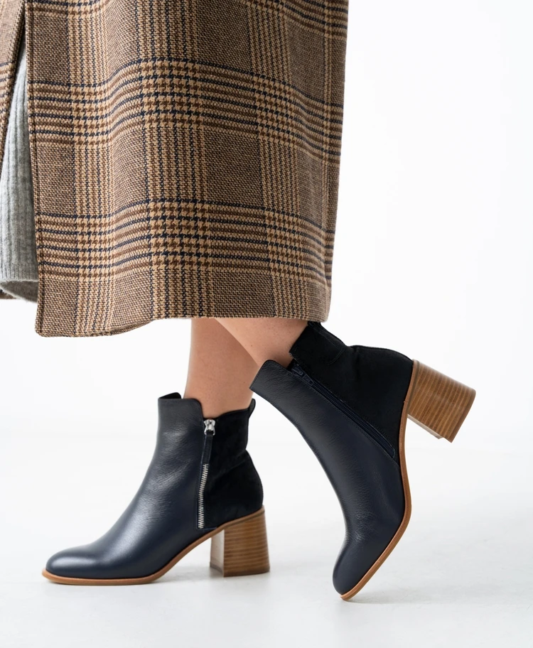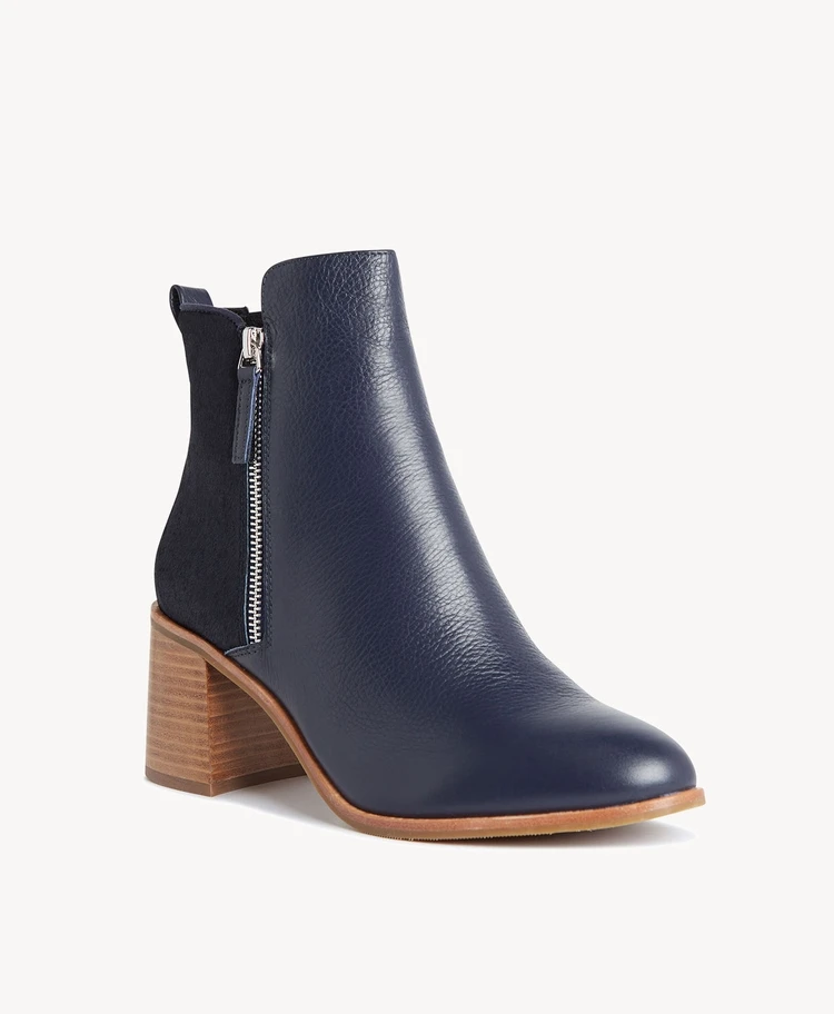 Our Fiona ankle boot is set on a square block heel, with a hair-on leather back panel that really elevates the look. Pair these with your favourite tailored pants for a dressy day to night look.