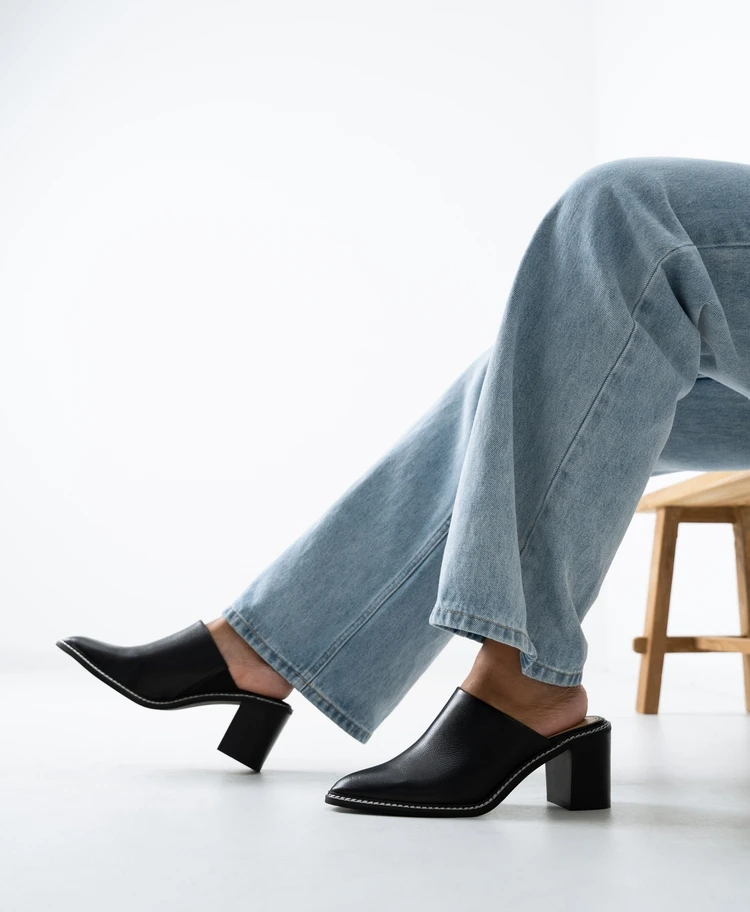 Slip into our Fitzroy mule for a look that’s as contemporary as it is timeless. Set on a stacked heel and featuring contrast stitching on the rand, these heels are as suited to sharp tailoring as they are to soft floaty dresses.