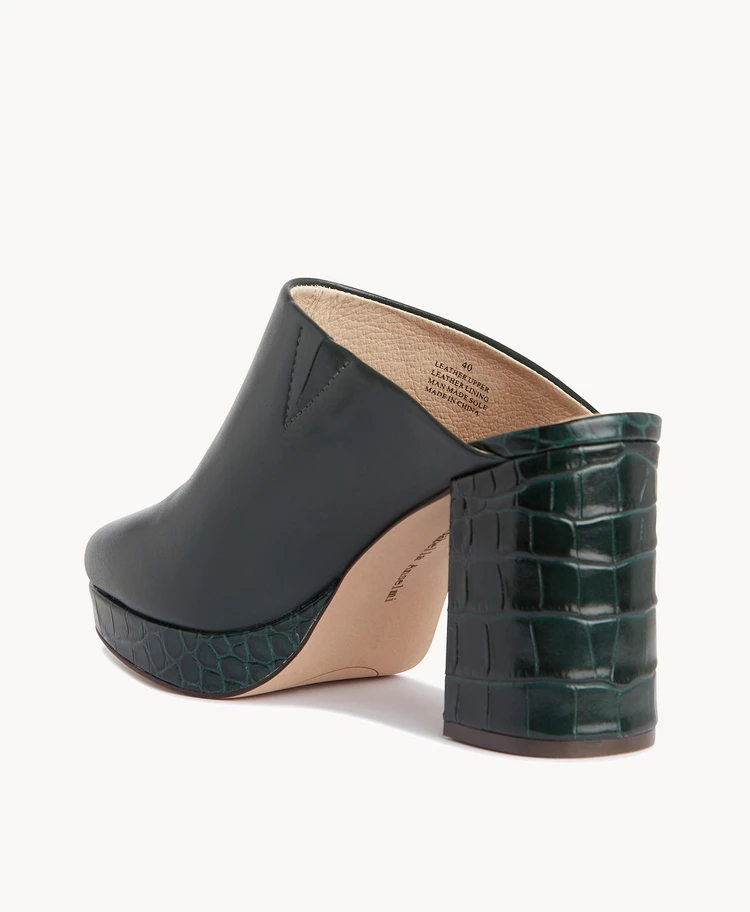 Adding some edge to a classic silhouette, the Flirt mule is an urban wonder. Croc embossing on heel and platform, elevates this romantic style and makes them a statement style for all year wear.