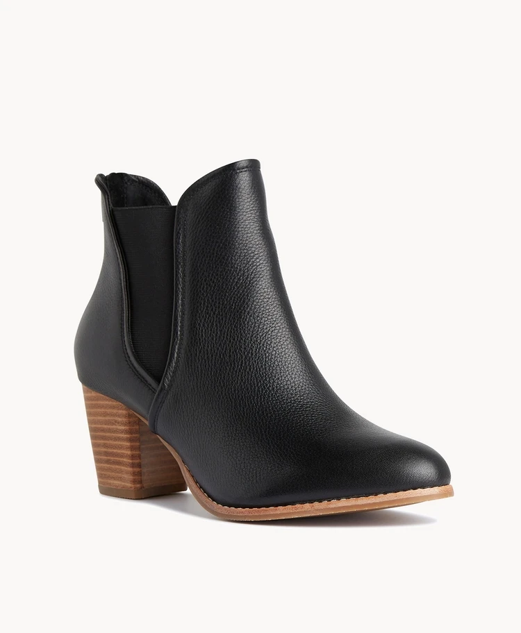 A Merchant 1948 favourite, our Francine Chelsea Boot features a stacked leather heel, beautiful leather and sides gussets for ease in and out. We’ve updated this version with a wide fit footbed for the perfect fit. A sophisticated boot to wear to work, weekends and beyond!