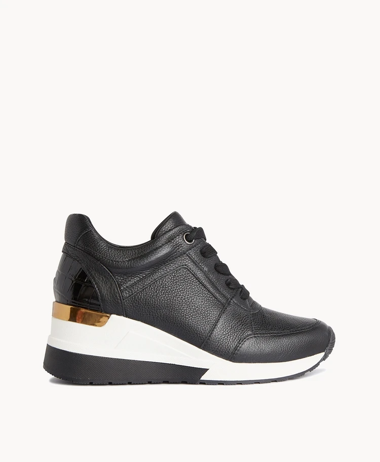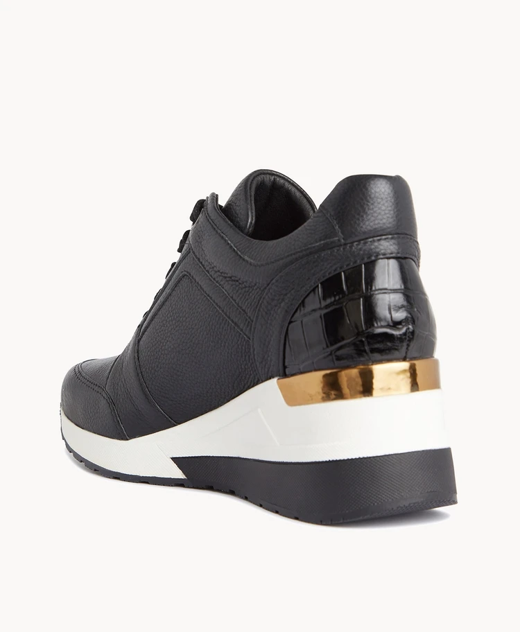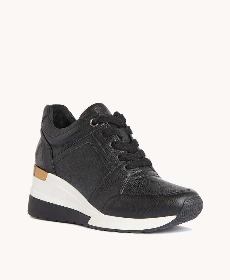 Our dynamic Hero sneaker is set on a wedge sole with combo leather details that are bold and stylish. Match the leather to your favourite tote as a finishing touch.
