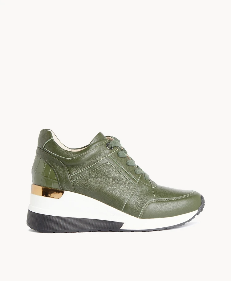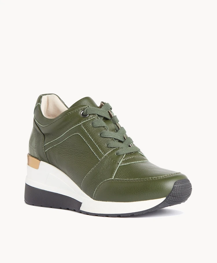 Our dynamic Hero sneaker is set on a wedge sole with combo leather details that are bold and stylish. Match the leather to your favourite tote as a finishing touch.