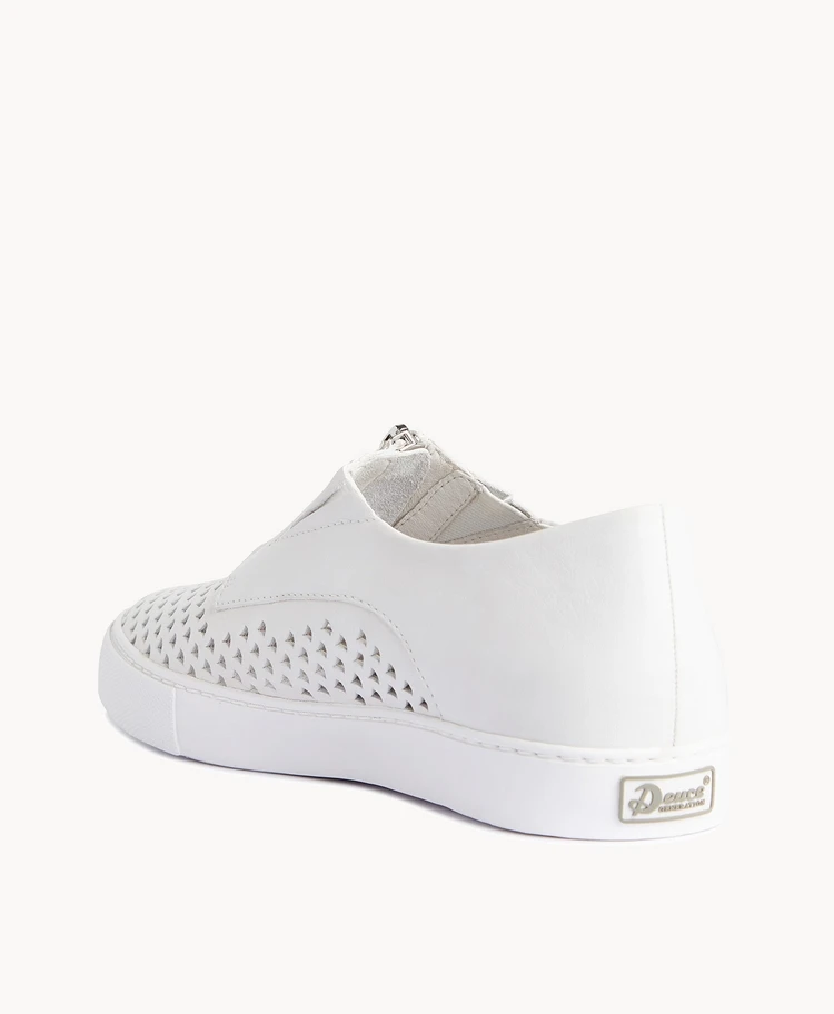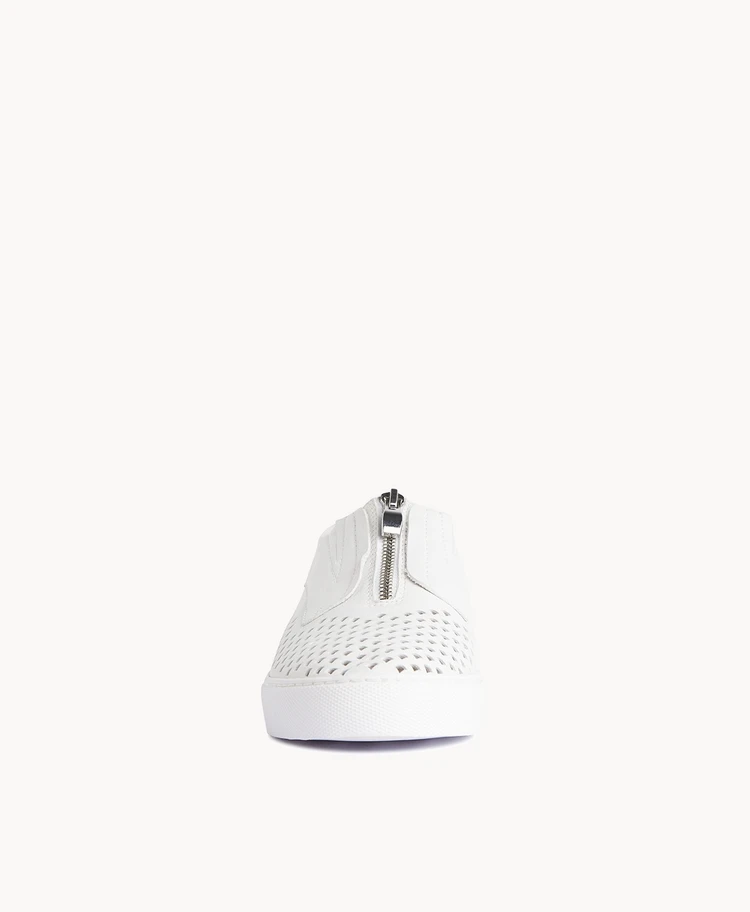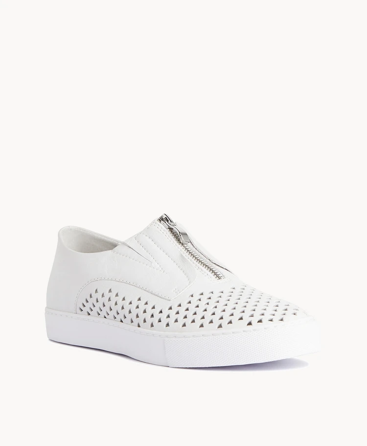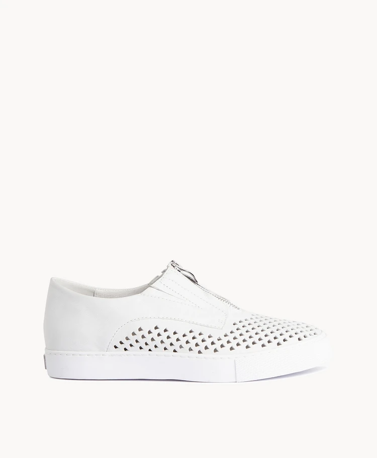 Meet Ireland. The zip hardware and perforated leather come together to elevate this summer sneaker. Wear her to the beach paired with denim for an effortless look.