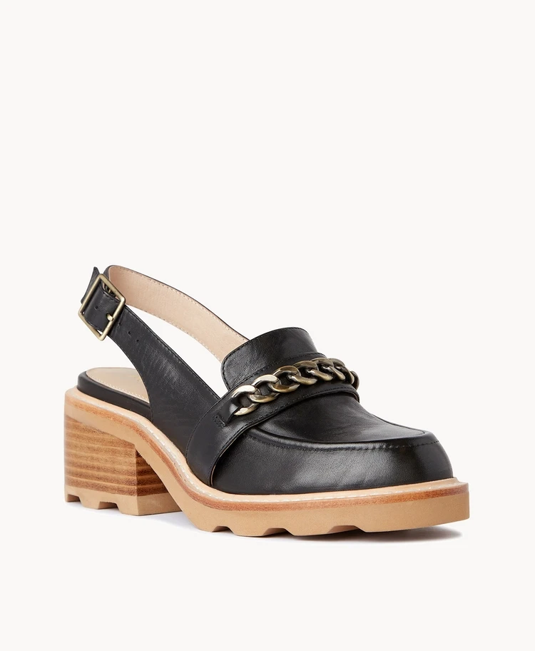Jacklyn is the upgraded slingback style that you’ve been searching for. With a chain embellishment and chunky sole, she’ll take you effortlessly from the boardroom to the bar.
