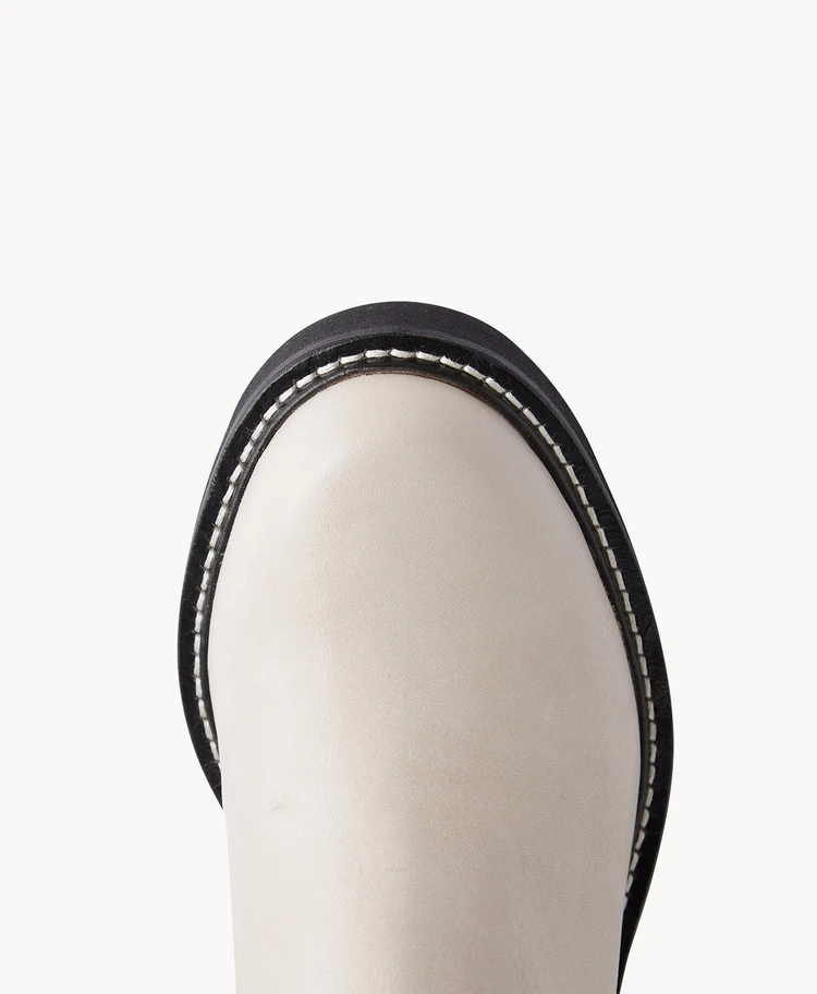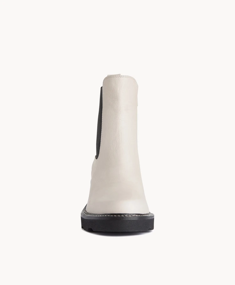 Perfect for city styling, our Joshua ankle boot is set on a molded tread sole outlined with contrast stitching. The stretch gusset extends all the way back to a leather pull tab, for a snug fit and ease on and off. Pair this chunky silhouette feminine dresses or your favourite denim.