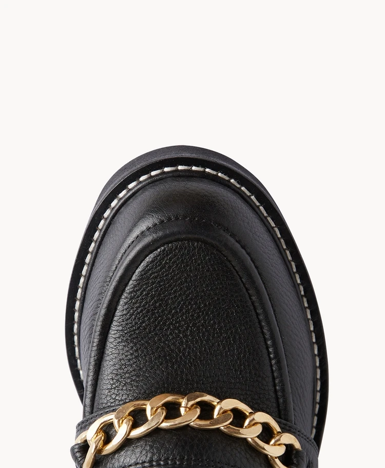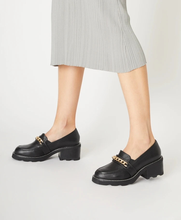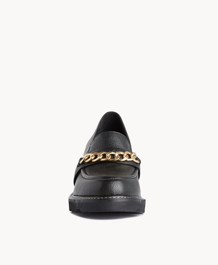Celebrate the loafer revival with Justice. Cool, calm and collected Justice features a gold chain detail and chunky sole, perfect for the latest stirrup pants or with a tailored look, Justice is the perfect statement shoe that is both bold and practical.