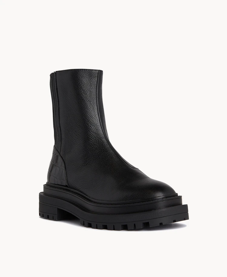 Refreshing a popular form, the Kaddie ankle boot breathes new life into combat boots. With contrasting textures and a rubber outsole, the Kaddie ankle boot is practical fashion at its finest.