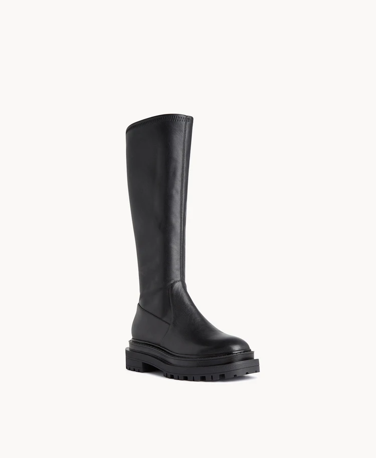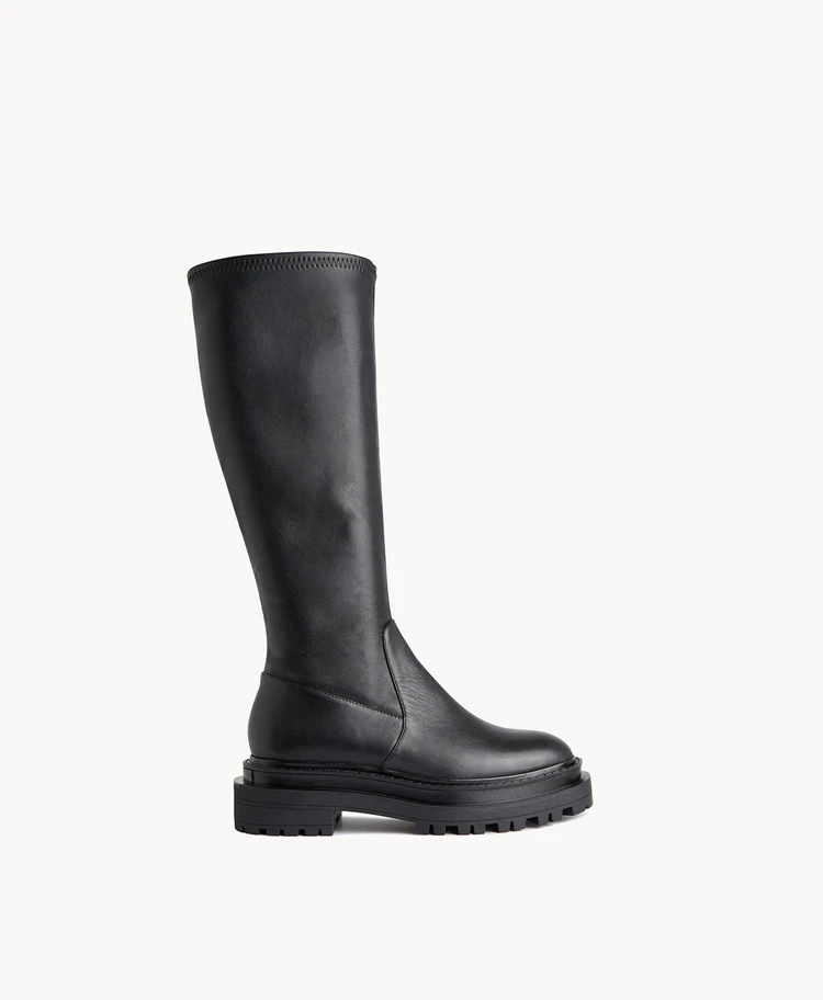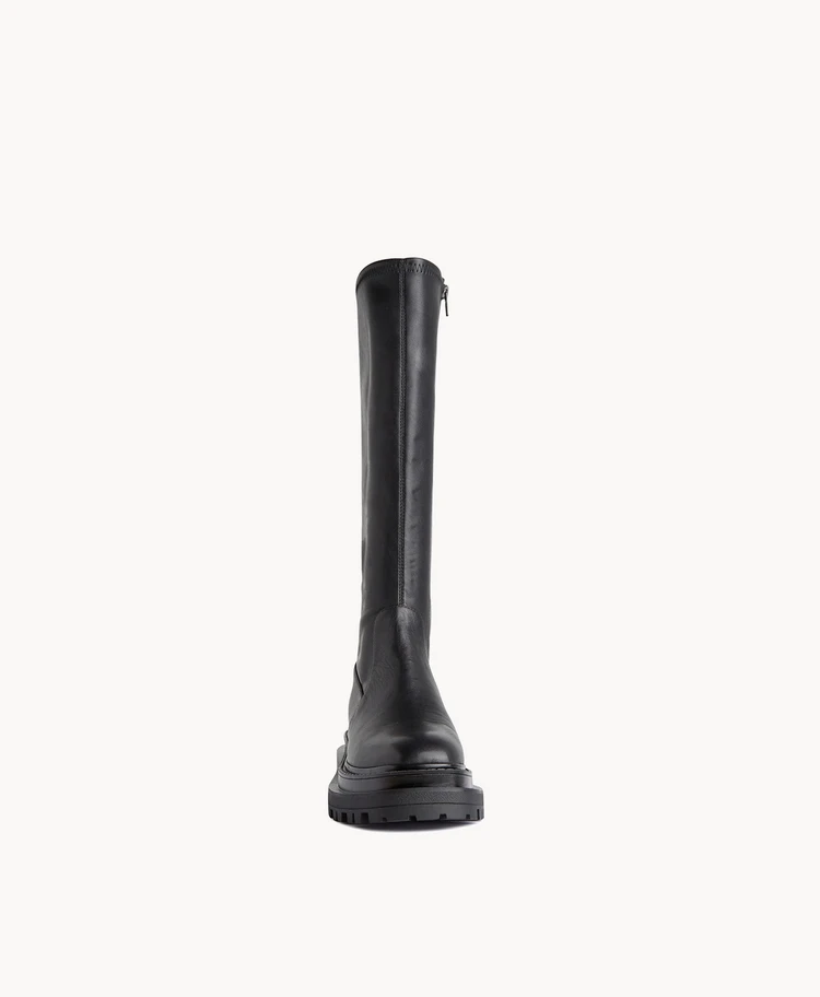 Our Kaz knee high grunge boot was designed for durability and resilience. Grounded on a 5.5cm molded tread sole, the sleek upper is leather paired with a synthetic stretch leg for a super flattering fit. Zip for ease in and out. Kaz’s bold styling works for day or night.