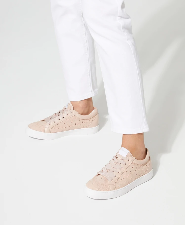 The Krisp lace up sneaker has delicate detailing that speaks to warm summer nights and long days by the sea. Pair her with long hemlines for a feminine look this summer.