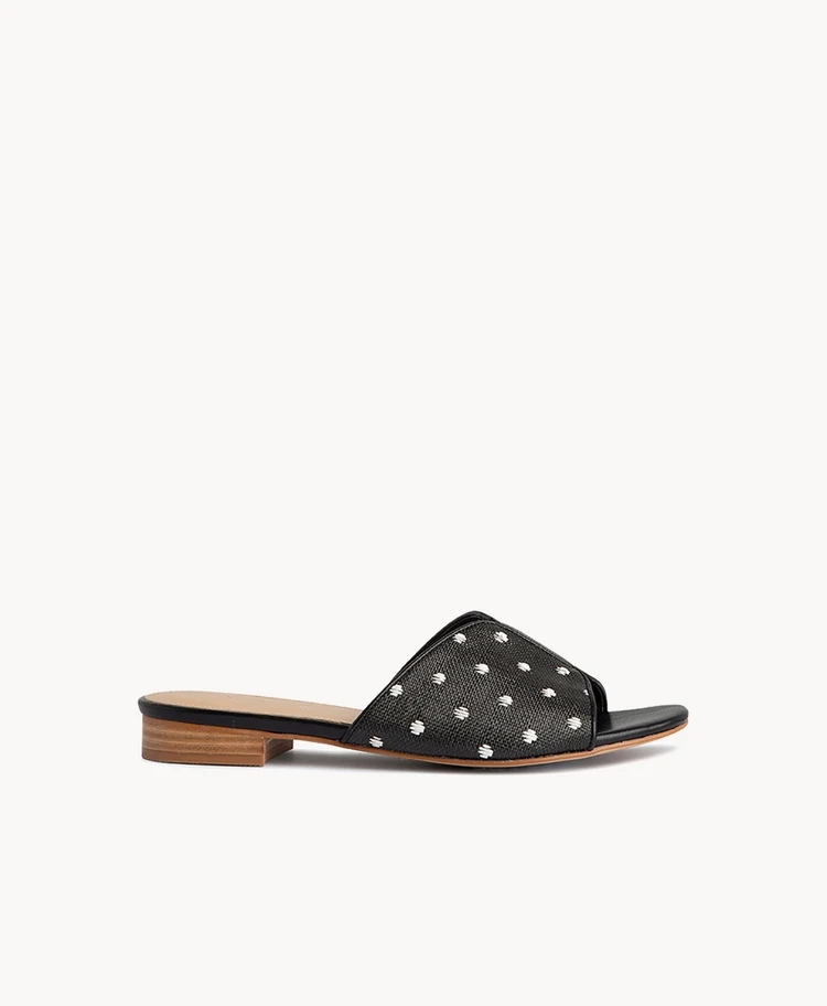 Lilo will add excitement to your outfit this season. Inspired by natural materials, this casual sandal takes a twist on the raffia design with a cute spot pattern. Crafted with two panels combined and fully leather lined for premium quality.