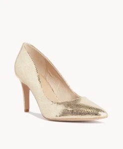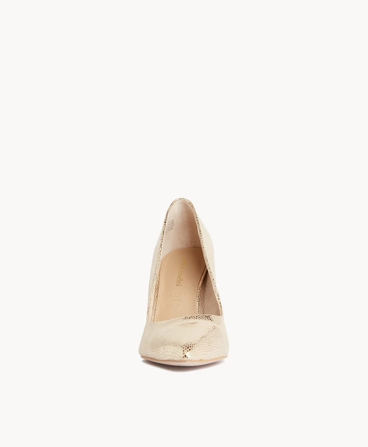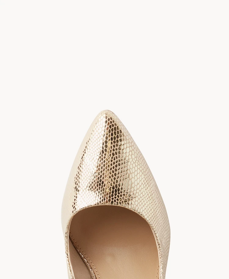 Turn heads in Mace, a sophisticated point toe stiletto heel featuring a dazzling metallic heel insert. A