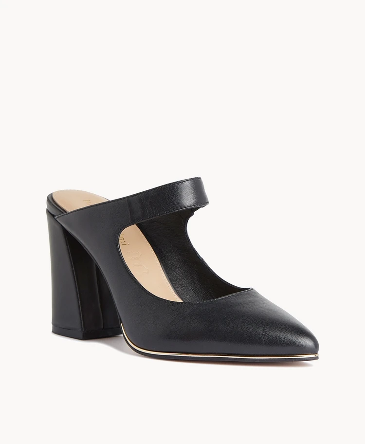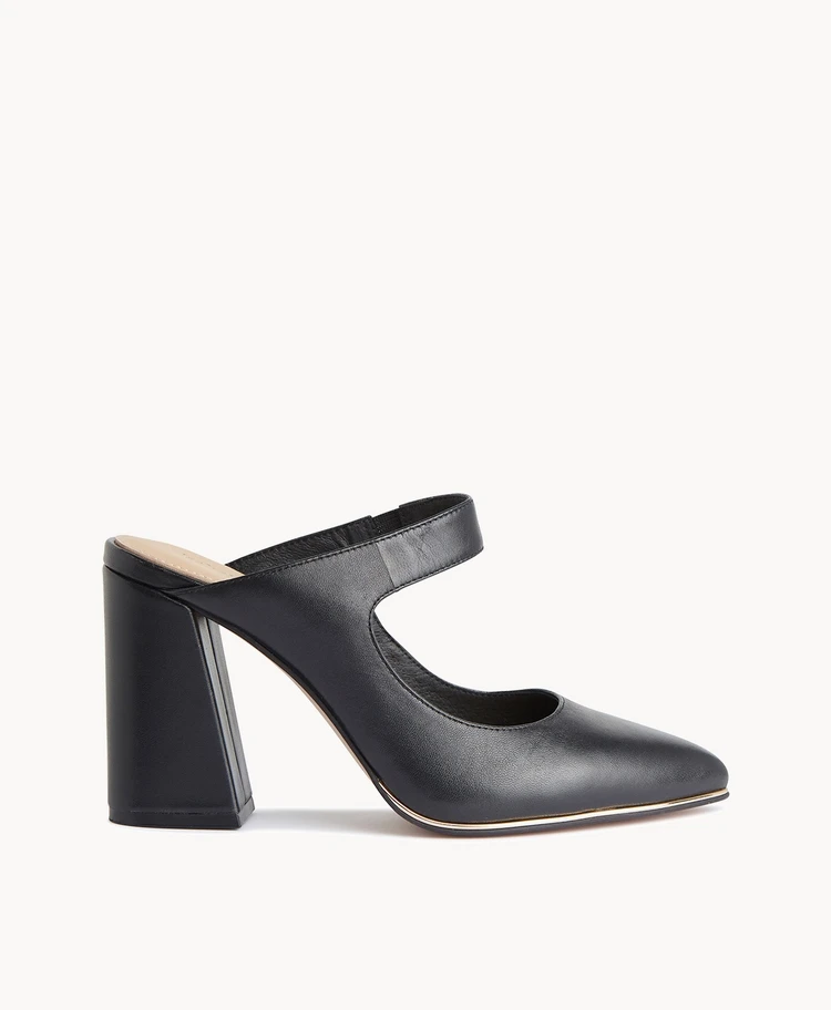 With a slick pointed toe and fine details, the Macy mule is perfected for an elevated event look. The high heel height makes her perfect for low hems while her elegant cutout makes her ideal for transeasonal wear.