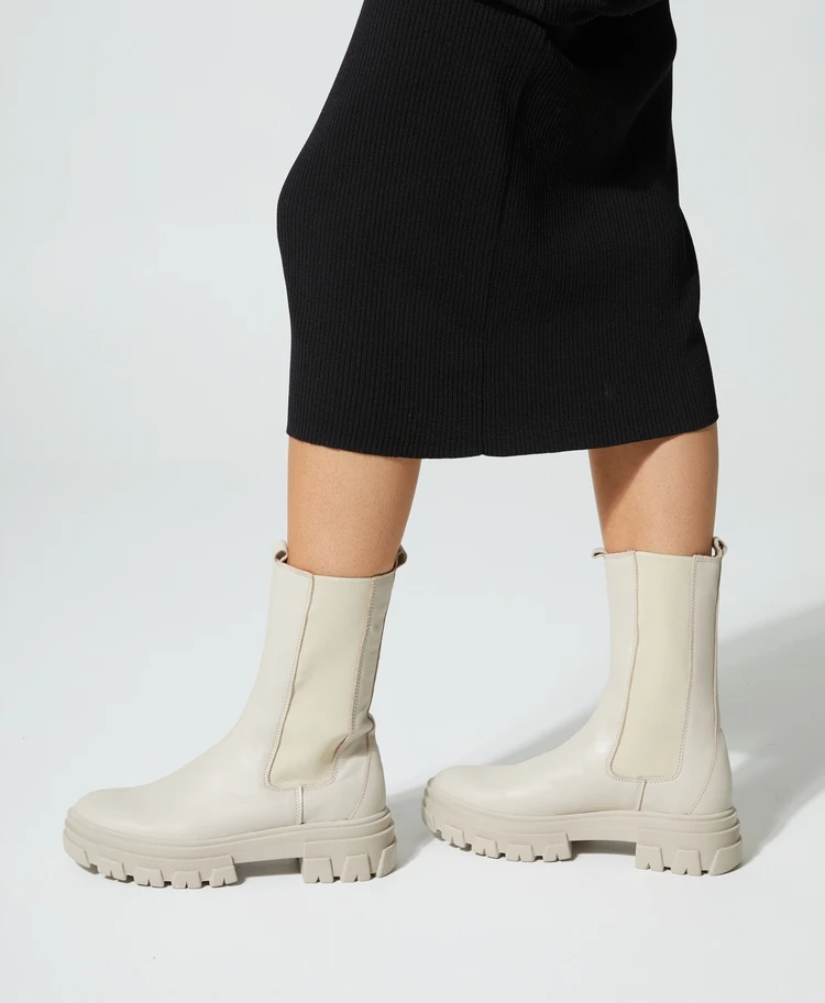 Our Maggie boot feels modern and minimal. Grounded on a chunky molded outsole, Maggie has topstitch detailing that gently traces around the rand. Pair with anything from floral dresses to denim in neutral tones. Crafted in Portugal.