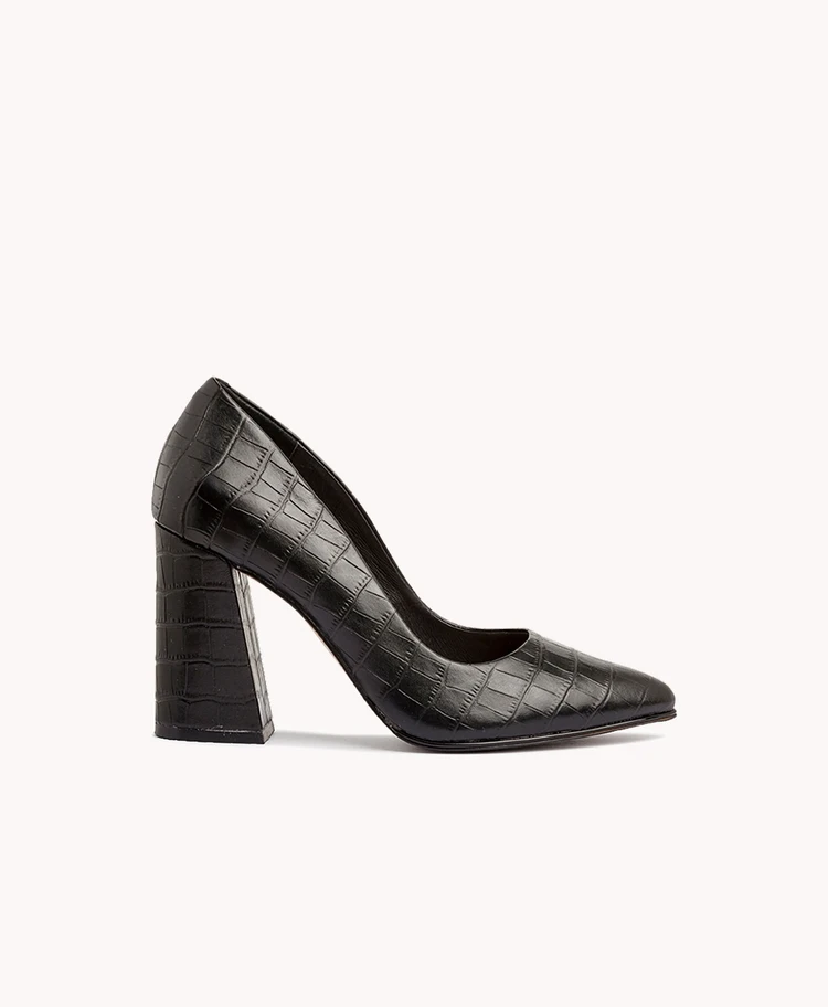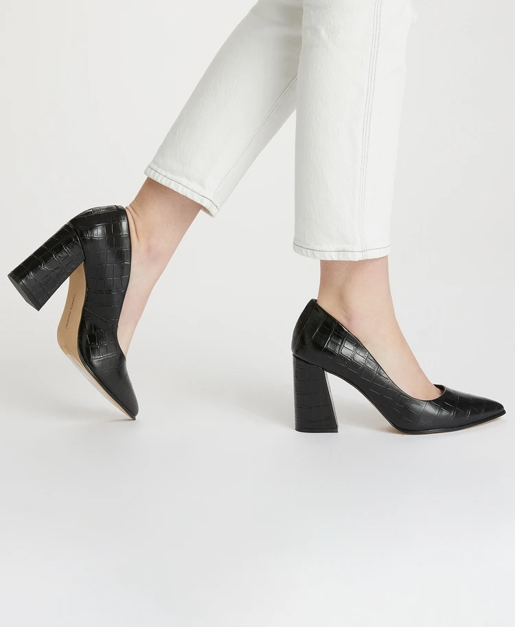 Not just a pair of classic pumps, these feature a metallic rand and modern flared heel. They’re made from lush leather, creating an understated yet glamorous look.