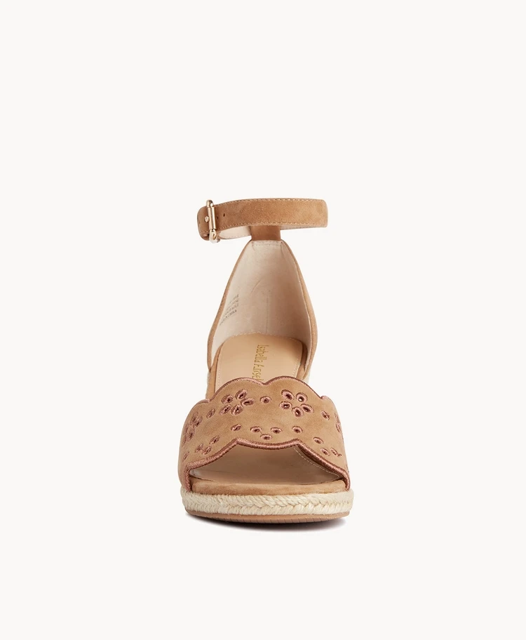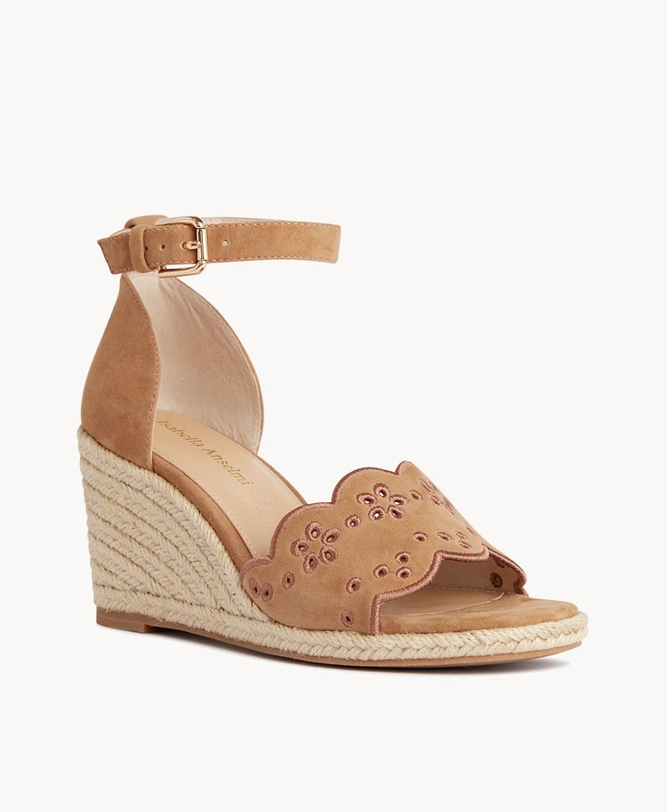 An espadrille wedge heel is perfect for summer events. With an embroidered toe, this sandal is the perfect accessory for days by the beach or nights at the bar.
