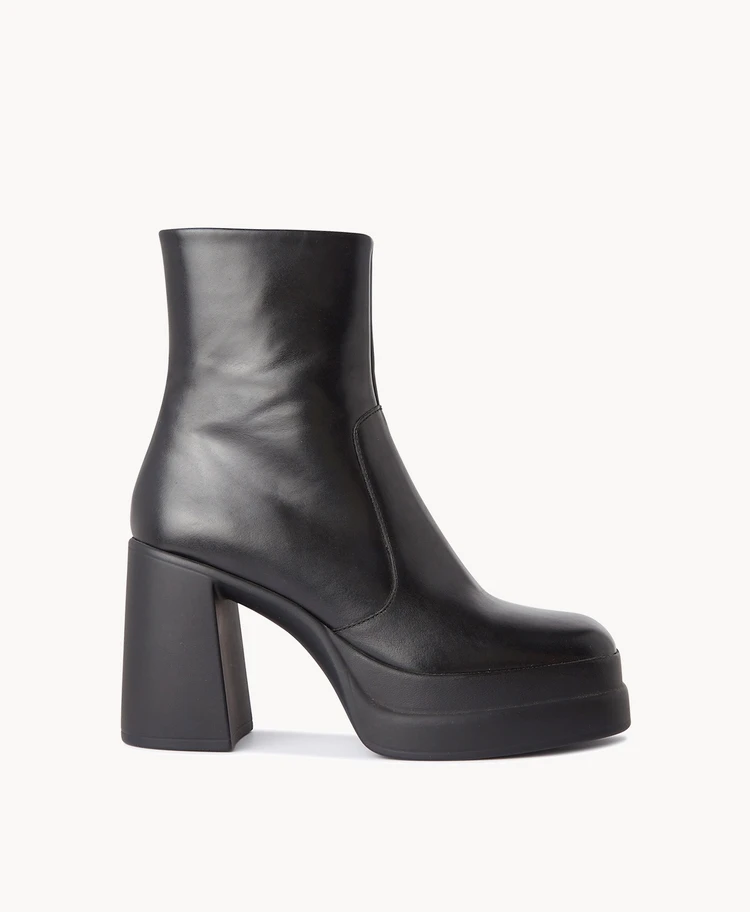 Our Rave ankle boot has that bold look that’s reminiscent of 70s styles. Set on a sky high platform rubber sole, style Rave your way, for nights out or head turning 9-5 looks.