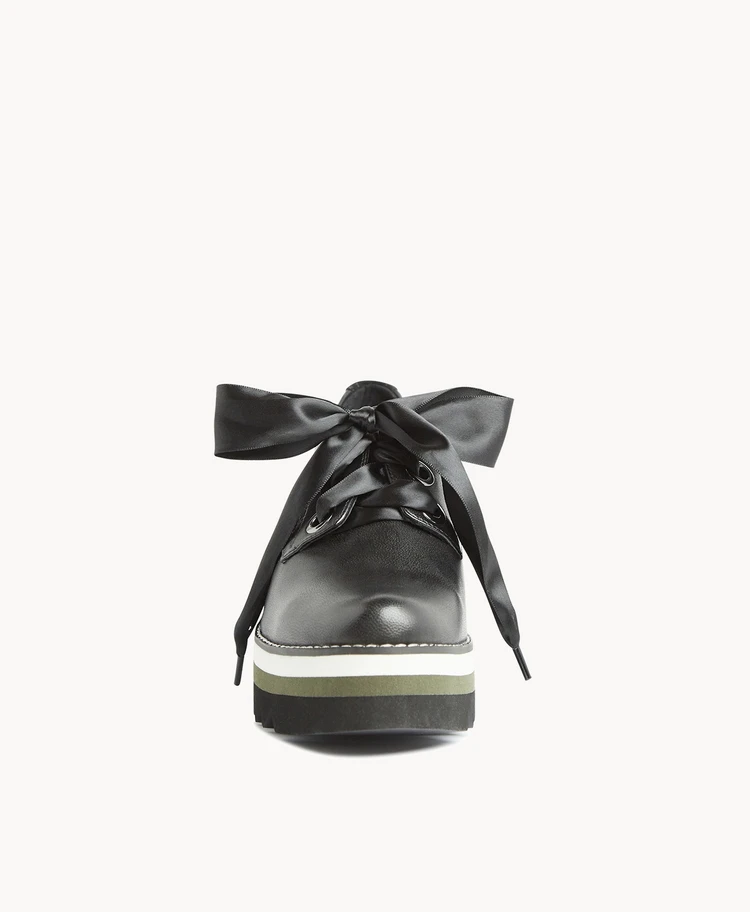 Our Sapna platform lace-up takes it’s inspirtation from classic brogue styling, updated with lush ribbon laces and a contrast platform heel that feels super modern. These are easy to dress up or down with all your winter favourites.