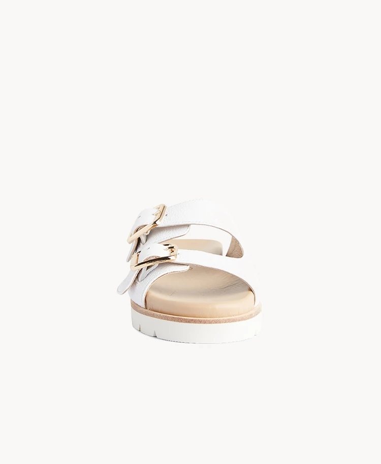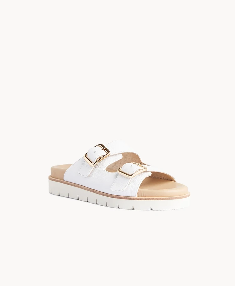 The ultimate slip-on style for long hot summer days, our Savvy sandal is set on a low rubber tread sole with chic metallic buckle details. Pair these with everything from flowy dresses to tailored pants.
