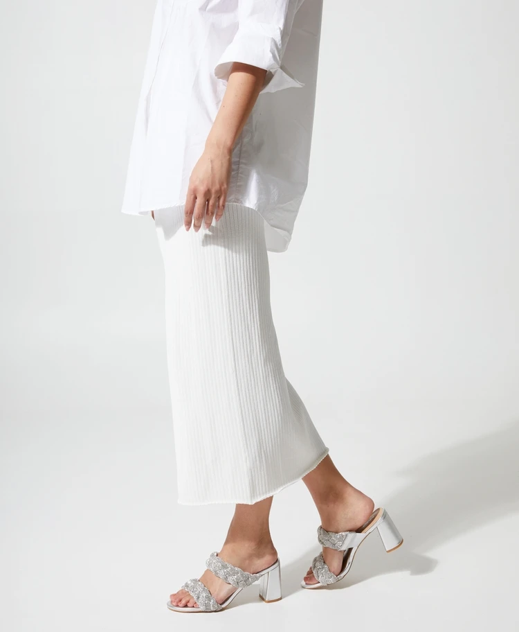 The Scooby heel, with braided non-leather straps and leather lining, makes this mule a summer must-have. Wear anywhere from bars to brunches for a punchy summer look.