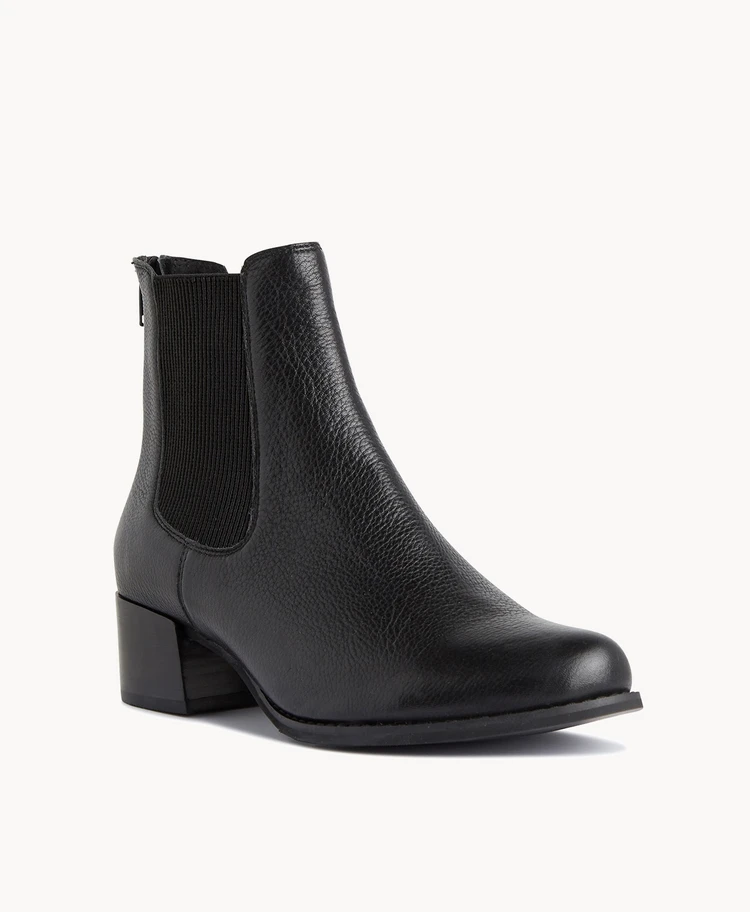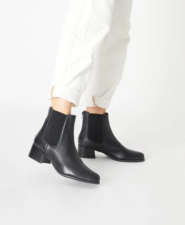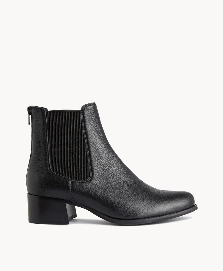 Our Secret wide ankle boot is sleek and versatile, styled with stretch Chelsea boot gussets and a back zip for the perfect fit. The flared block heel gives ample lift, and we’ve designed this style with a wide fit last for a wider fit.