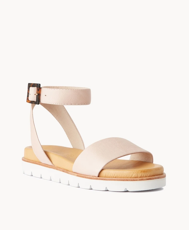 Meet the Sender sandal. Minimal styling and an adjustable ankle strap make this the perfect pared back style for summer events. Pair with bold prints to let your style do the talking.