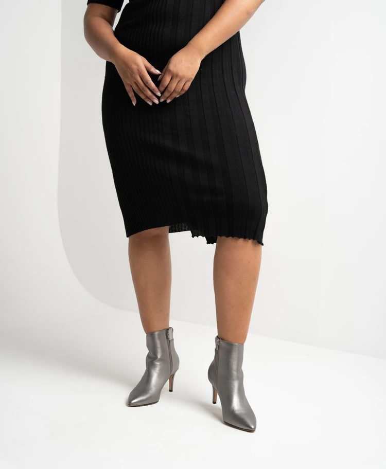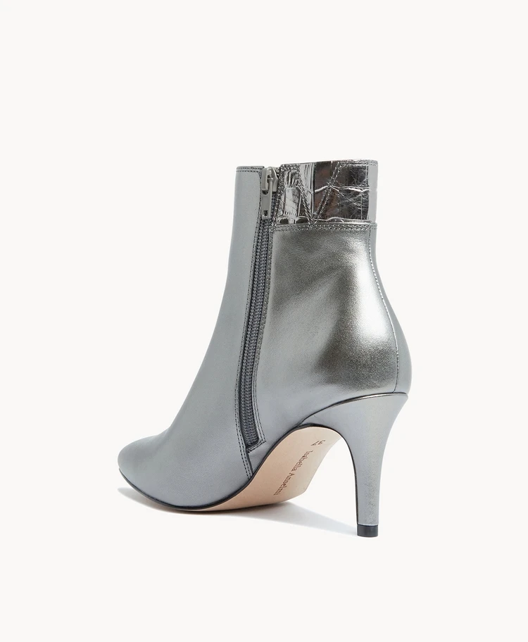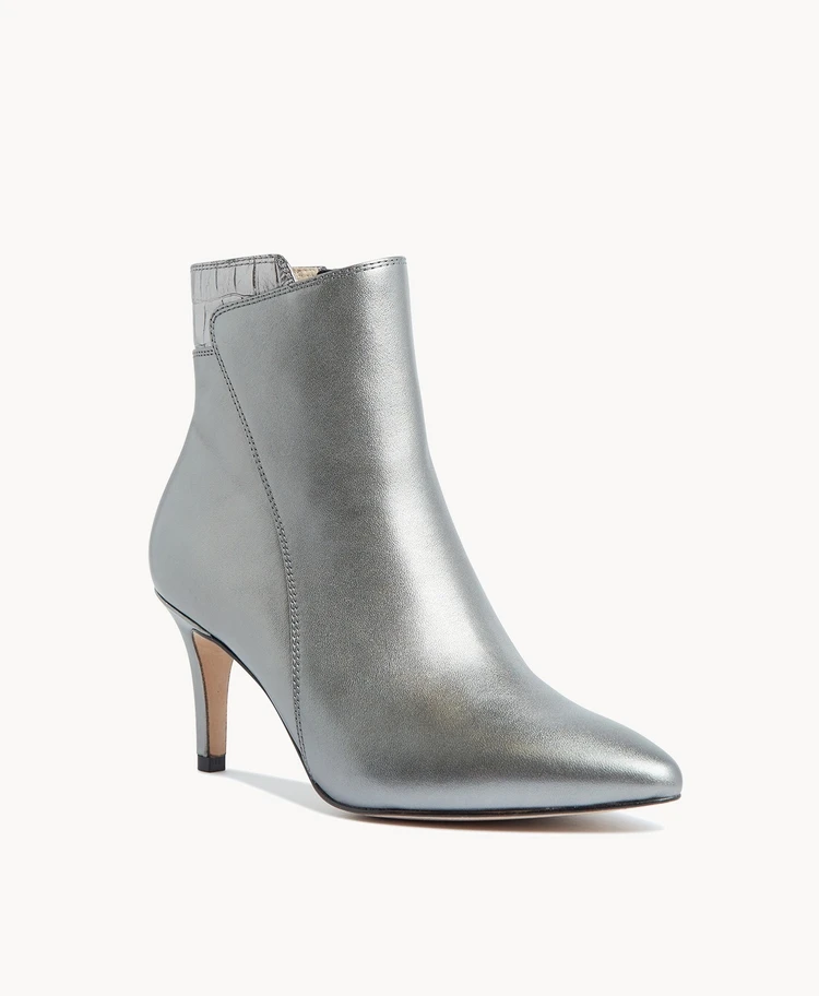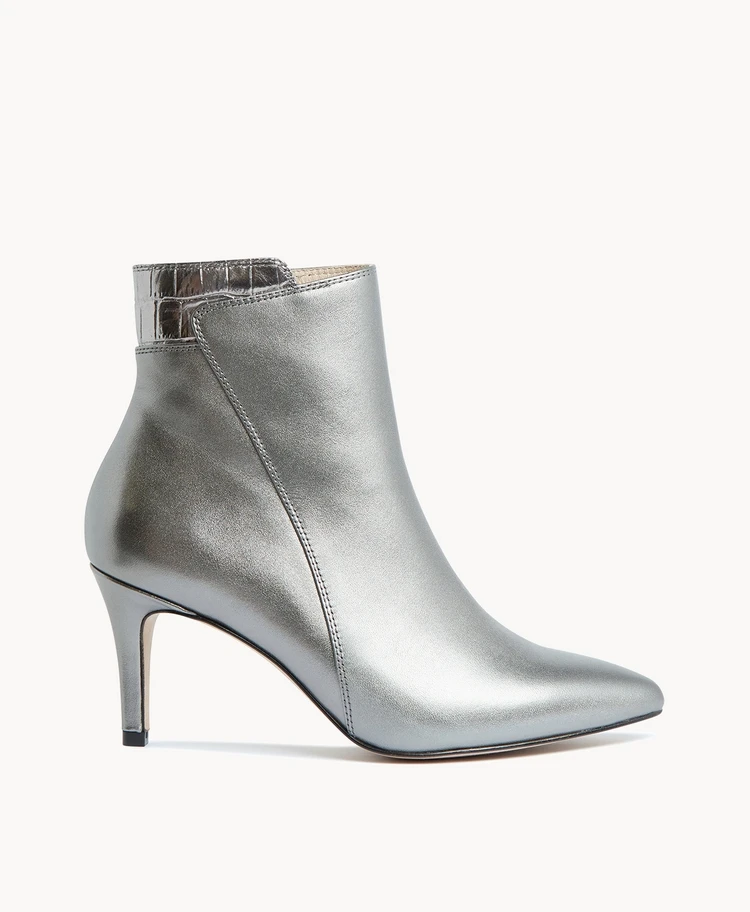 Stride confidently into the new-season in our Shania ankle boot. This classic stiletto style is updated with retro-future style lines and croc trim. Show off yours under tailored pants or go for bold with a thigh skimming mini.