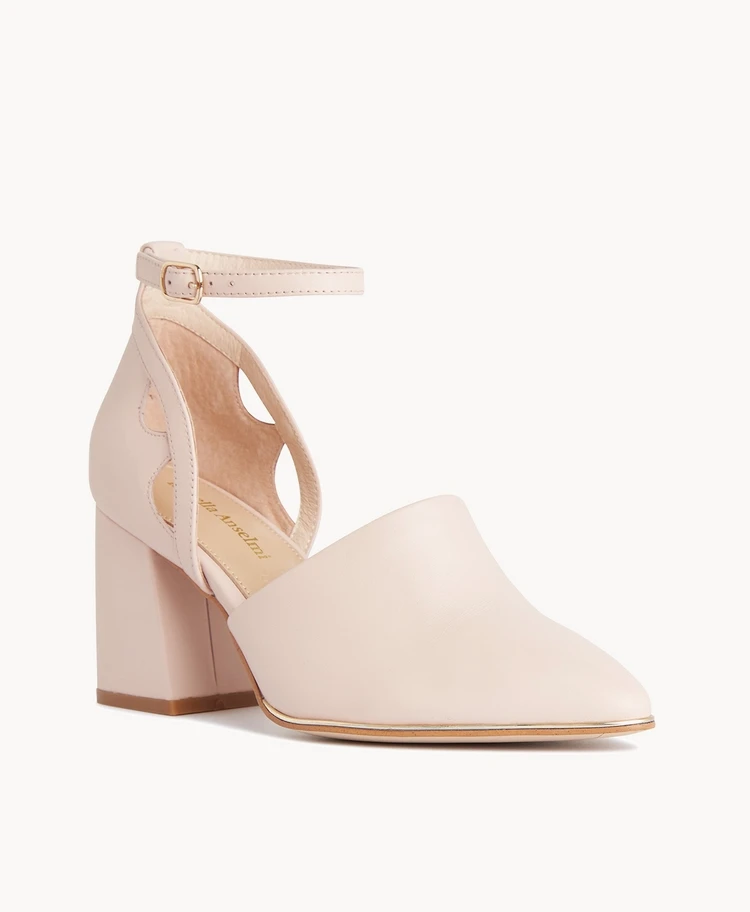 This ultra flattering style has the kind of subtle detailing and fit that works for any occasion. Sidder’s high cut and block heel allows for hours of wear, and the cutout upper is traced with a thin ankle strap that feels really elegant. Match your jewellery to the metallic plate rand.