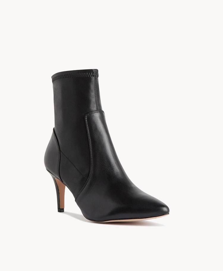 Our Sika ankle boot features a stiletto heel and synthetic, stretchy anklem fit that ensures a refined silhouette at all times. When paired with a blazer, these boots are statement worth making.