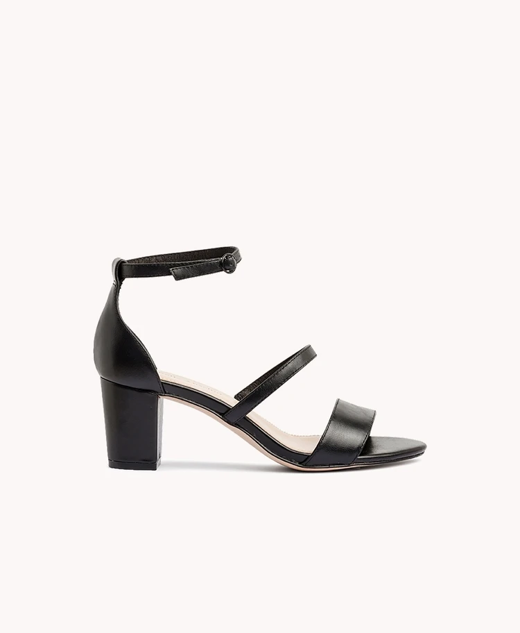 With barely there straps and an enclosed back, these sandals are the easiest way to wear the strappy trend. Made from smooth leather, they also have a wrapped block heel.