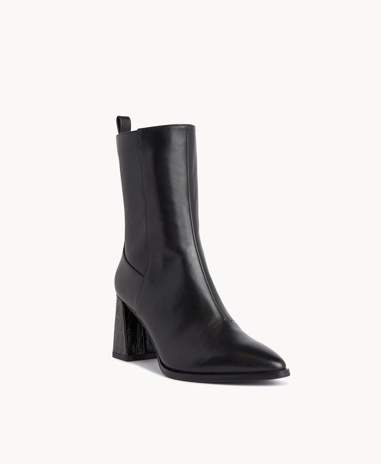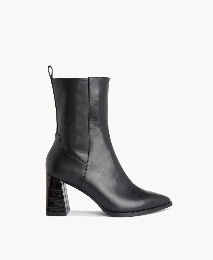 Snapple’s croc-wrapped flared heel and point toe create a really sophisticated silhouette. With a pull tab for ease in and out, these ankle boots are sure to be on high rotation in your winter wardrobe.